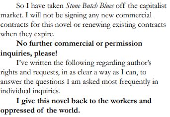 Firebrand Press, the small publishing house charged with preparing and issuing this groundbreaking work, filed for bankruptcy not long after the work was released. Thus began the first battle by the author to regain control of their work. What followed was a 10th anniversary edition released by Alyson books, another publisher that proved to be financially unstable. When the publishers ran into business troubles, the work was left in a no-mans-land. The publishers still retained the rights, but they couldn’t afford to publish the work, leaving the creator stifled and their story all but left behind. Feinberg fought for many years to wrest back control of the publishing rights: not because they wanted to make money but because they wanted to make the book freely available for all.