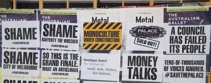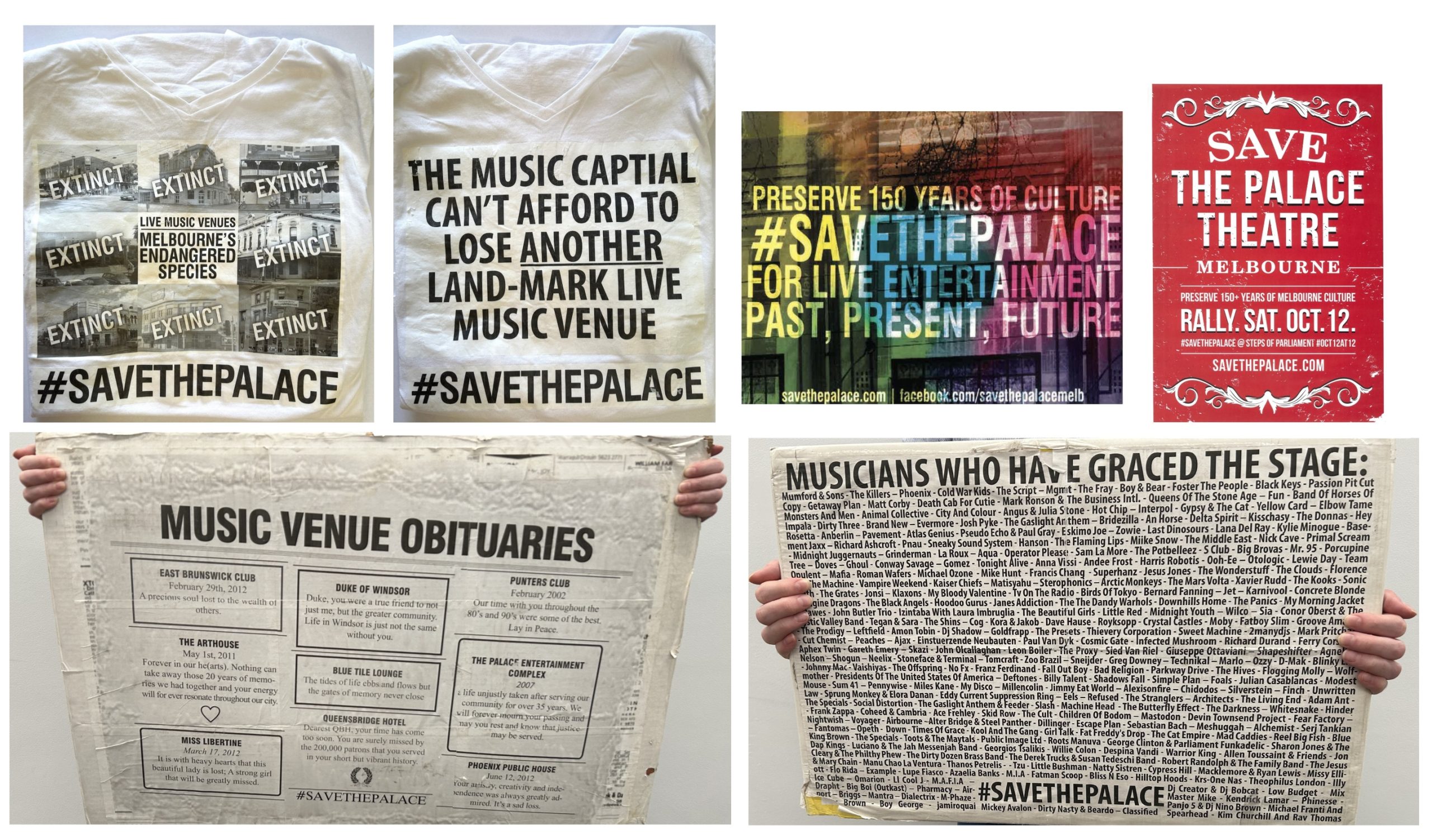 Left: Campaign to protect the Palace Theatre, 2016. Courtesy of Melbourne Heritage Action