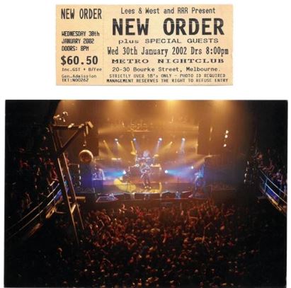New Order, the Metro, 30 January 2002. Ticket and photo from author’s collection. © Photo by Alison Ridgway, 2002