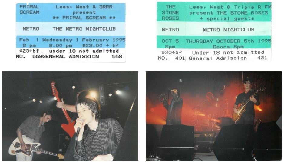Left: Primal Scream (with guest guitarist Roland S Howard), the Metro, 1 February 1995. Ticket courtesy of Veronica Witteveen. © Photo by Veronica Witteveen, 1995