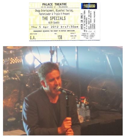 Terry Hall from The Specials, the Palace Theatre, 5 April 2012. (100 years after the opening night of Brennan’s Amphitheatre on 6 April 1912) Ticket and photo from author’s collection. © Photo by Alison Ridgway, 2012