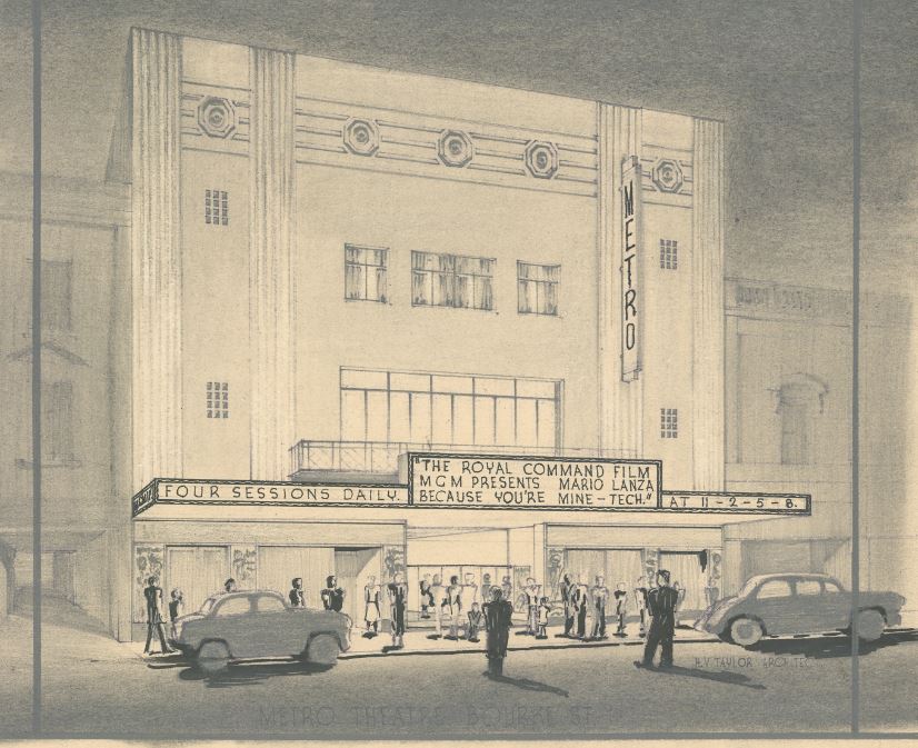 Detail from Metro Cinema, Drawing no. 1493, H Vivian Taylor, 1952. Metro, formerly St James Theatre and the Palace Theatre, Bourke Street Melbourne 1923-1954; LTAD162/13