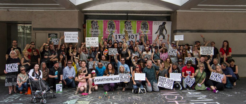 Save the Palace protest group outside the Palace Theatre, 2016. Courtesy of Save the Palace