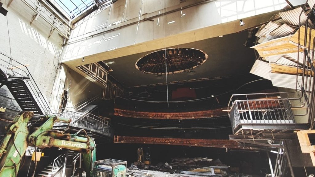 Right: Demolition of the Palace Theatre, 2020. Courtesy of Save the Palace