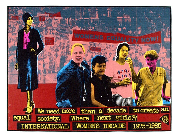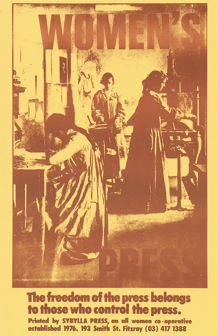 Established in 1976 in the inner Melbourne suburb of Fitzroy by a group of women to provide printing facilities for the production of material to support the women’s movement. Printed works included flyers, posters, cards, and literary works. The Collective operated from a socialist/feminist perspective, and resolved not to print material that was sexist, racist or anti-working class. The group produced posters, postcards, t-shirts, badges and stickers on violence against women, anti-nuclear and anti-war issues.