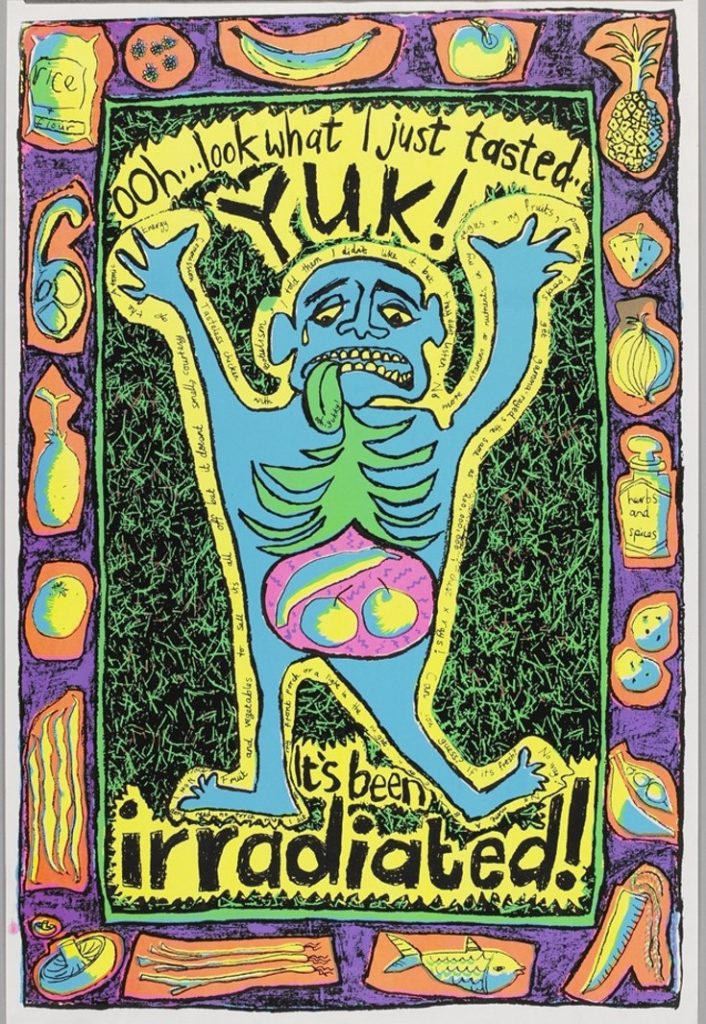 [left] Yuk! It’s been irradiated! 1987, screenprint by Sue Anderson. Redletter Press, H2003.90/661; [right] Beat! Australian pop and rock culture 1958-1984,(1984), screenprint by Julia Church, Bloody Good Graffix, H2003.90/828
