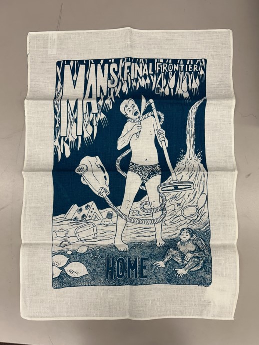 Man’s final frontier, the home, 1993, tea towel By Carol Porter, RedPlanet; H2004.32/118