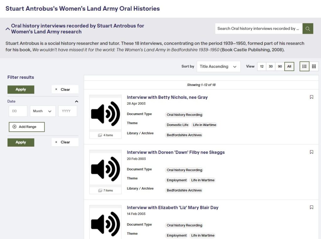 Interviews with Women’s Land Army recruits who served from 1939-1950 from Bedfordshire Archives
