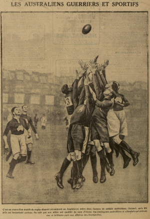 In 1916 an Australian rules exhibition match was played in London. It was reported in the English newspapers. News of the game even made its way to France (above) and to New York. Six of the players competing later died in the war.4