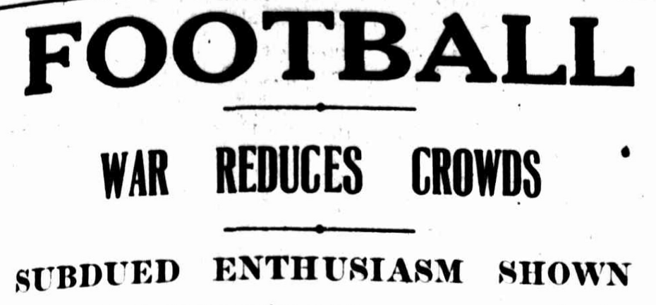 VFL Football did continue in Melbourne, but the pre-war crowds shrunk as the reality of the cost of the conflict hit home.