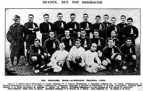 pleaded with delegates not to play this winter, saying that he could not see how they could think of football while the dreadful fight was being waged on the Western front. While thousands were fighting for our liberty, how could men go on hipp-hip-hooraying for football? (Argus, 16 April 1918)