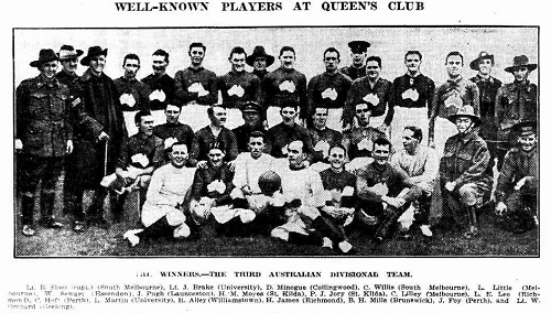 carried their thoughts vividly back to those happy days when football was played in certain Melbourne suburbs they called “home”. And it is in such happy thoughts and memories that we soldiers live. (Argus, 10 May 1917)