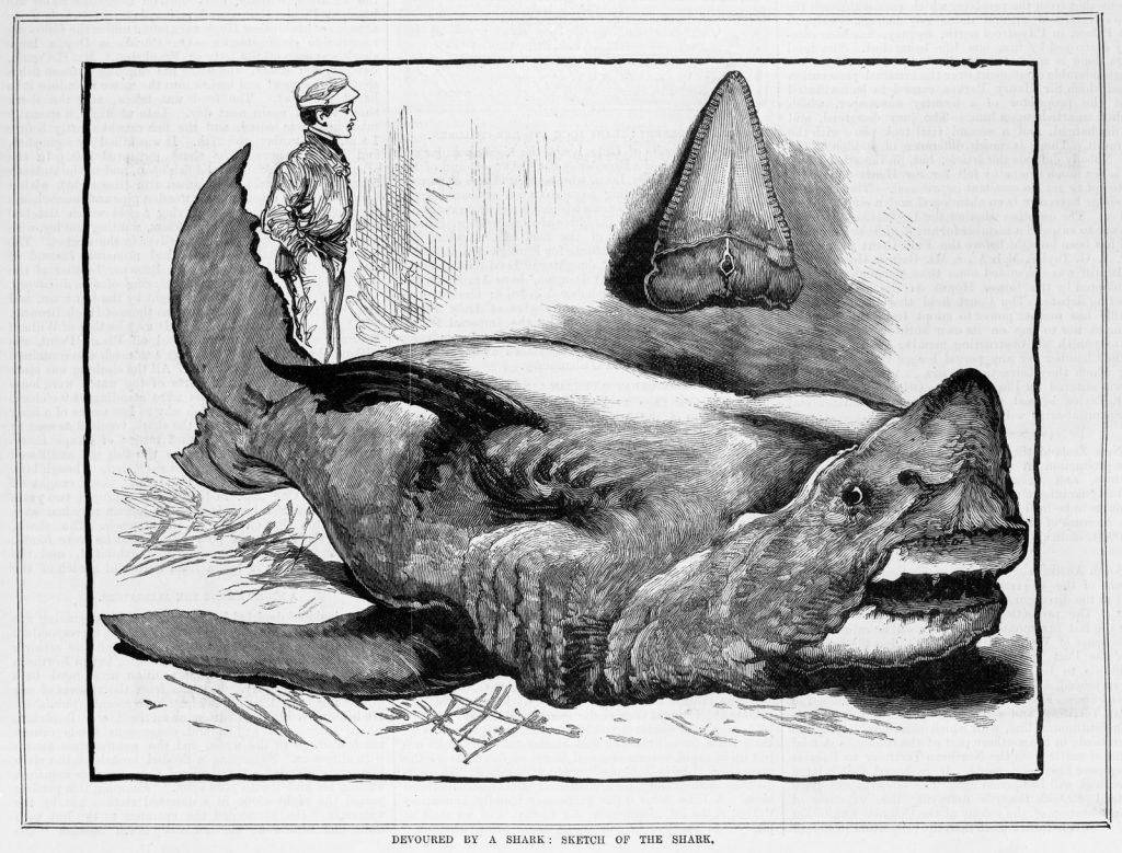 In 1883, two brothers went out on the boat Iolanthe into Port Phillip Bay and never returned. A few days later, their parents, who were ardent spiritualists, employed the help of a medium, George Spriggs, to discover what had happened. According to the tale, Mr Spriggs made ‘contact’ and was told by one of the brothers that their boat had capsized and one of them had their arm bitten off by a large fish ‘not like any shark I have seen’,14 but the brothers were now at peace. A few weeks later, a large strange shark, unlike the usual species seen by fishermen, was caught off the coast from Frankston. When the shark was split open, the fishermen found the bones of a human arm, as well as a watch and some other belongings of one of the missing brothers.