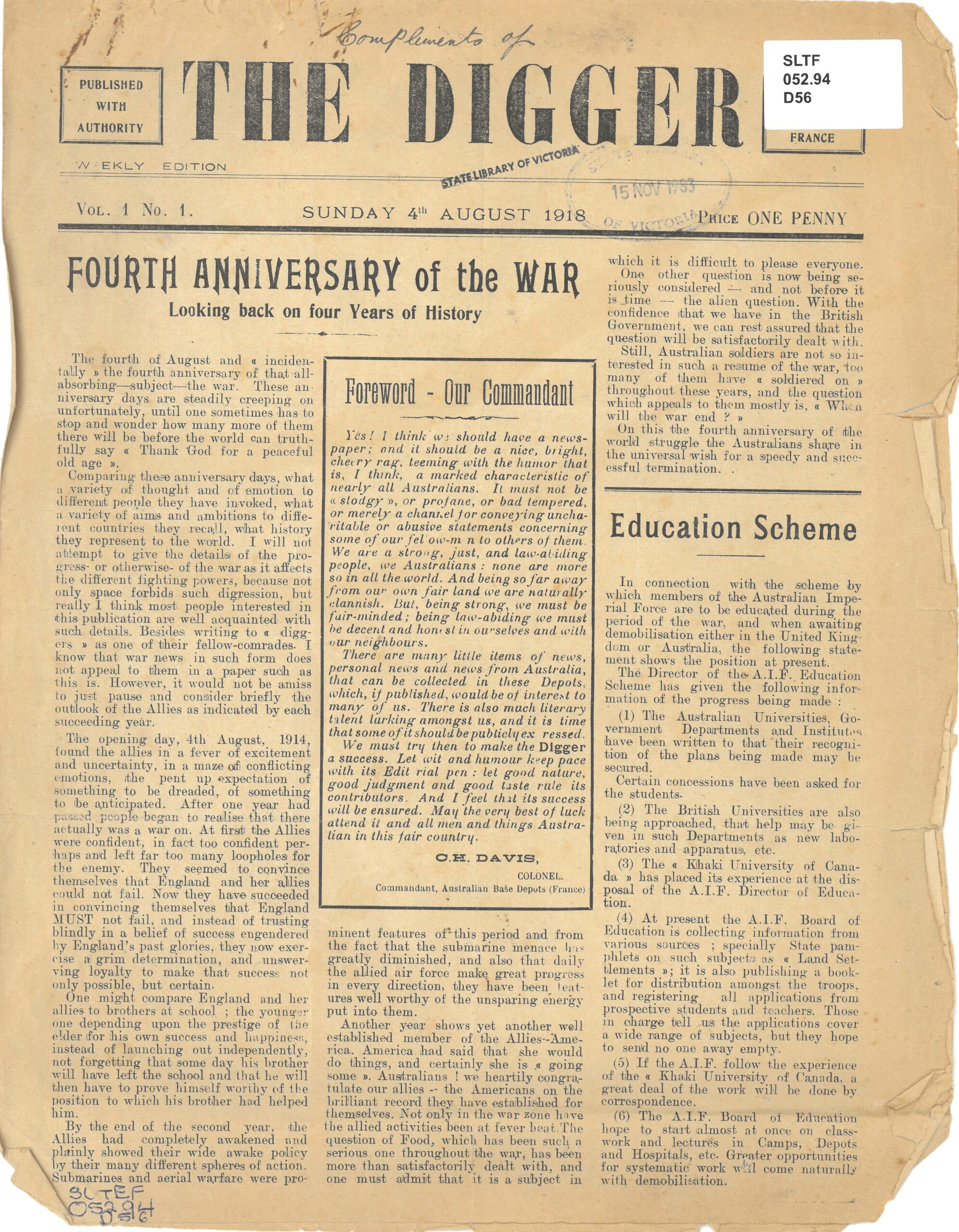 All Abaht It: With which is Incorporated the “Furphy Times”. The Journal of the – (10th) Field Ambulance (Australian Army Medical Corps), (November 1916), pp 1 and 11. State Library Victoria.