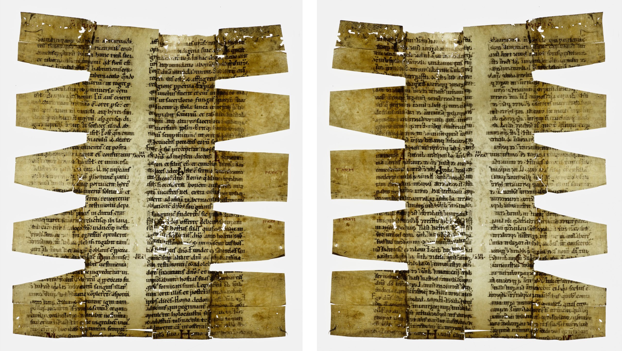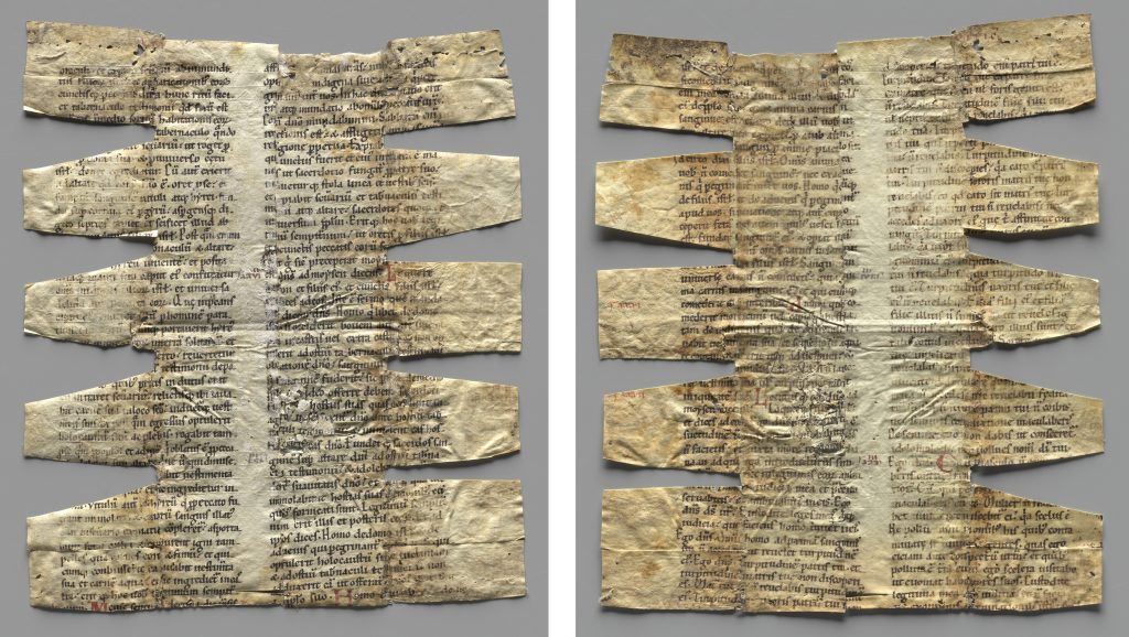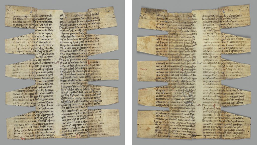 The Leviticus leaf is in fair condition despite its gruelling history of use. Parchment is known to be particularly sensitive to changes in relative humidity, so these processes – which likely involved wetting and drying the parchment – were inevitably damaging.