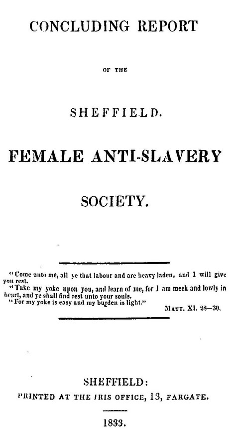 - Concluding report of the Sheffield Female Anti-Slavery Society, p 9