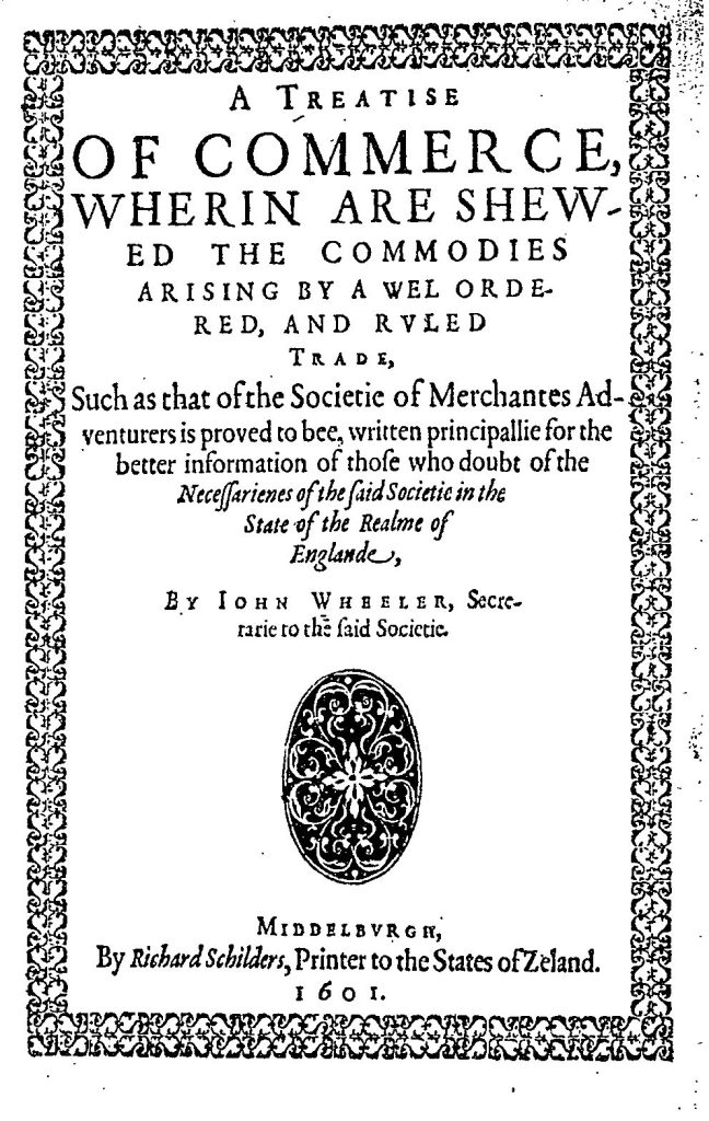 Left: Wheeler, John, 1601, A treatise of commerce, wherin are shewed the commodies arising by a wel ordered, and rvled trade, Richard Schilders, Middelburgh; Right: Vaughan, Benjamin, 1788, New and old principles of trade compared, J Johnson and J Debrett, London