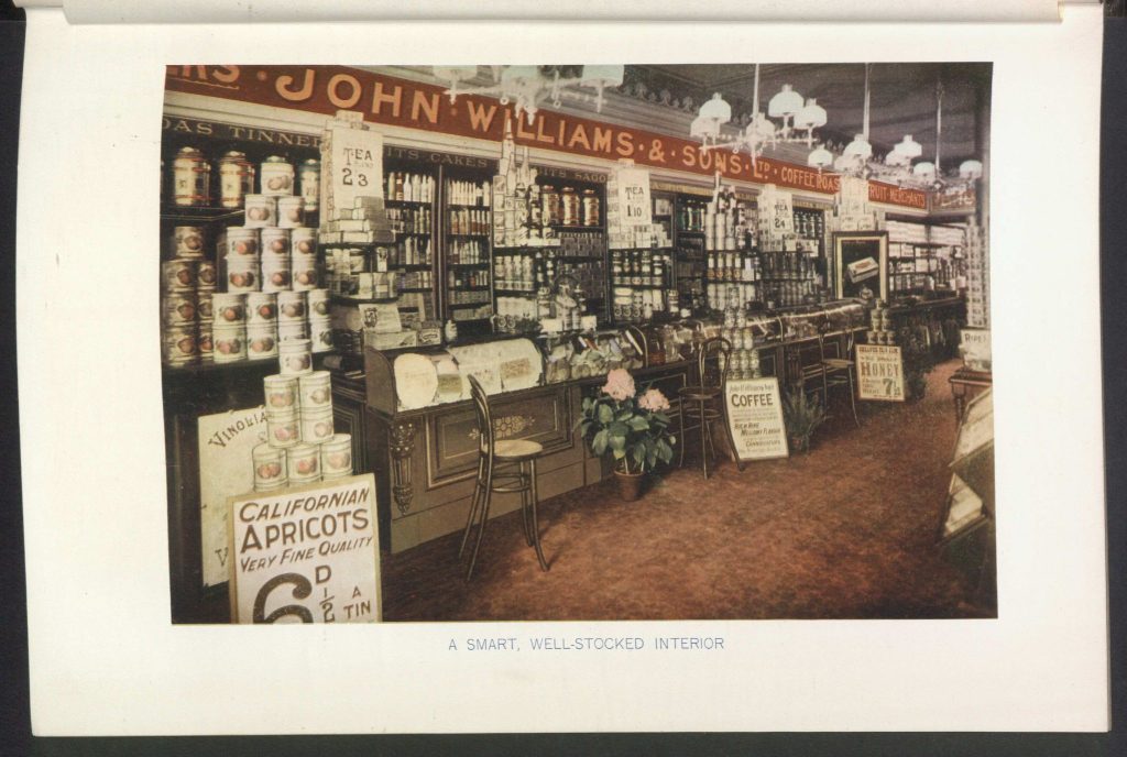 And lastly, in our brief tour, this photograph from the trade journal, The practical grocer, illustrating a shopping day from another age — a very different experience from today’s neon-lit aisles and trolleys: