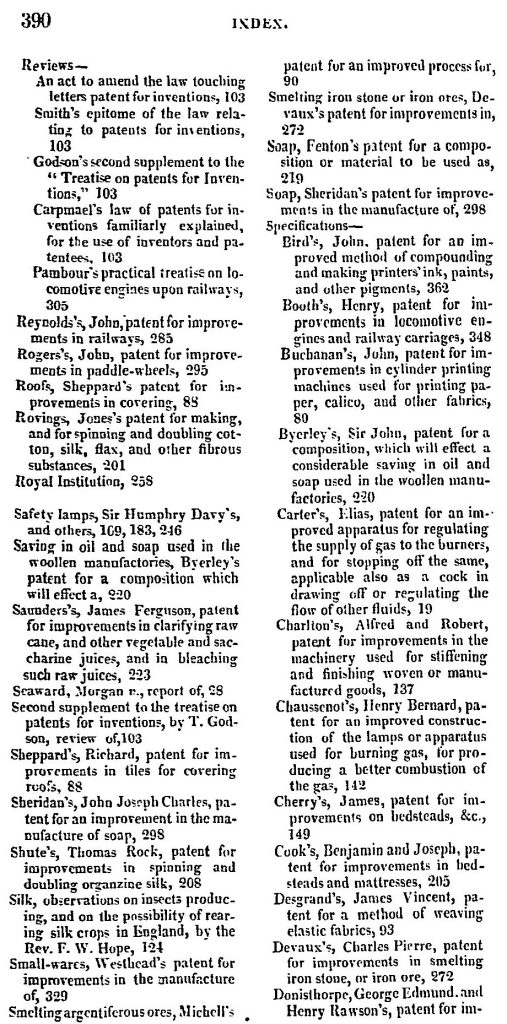 This page from The Repertory of patent inventions, 1836 provides just a glimpse of the varied products and industries that inventors’ active minds were working on at the time. The age of invention witnessed a rapid growth in patent applications — and in 1852 the English Patent Reform Act came into force, to ‘diminish the expense and difficulty experienced at present in obtaining patents, and to make more certain to patentees the rights to which their inventions entitled them.’5