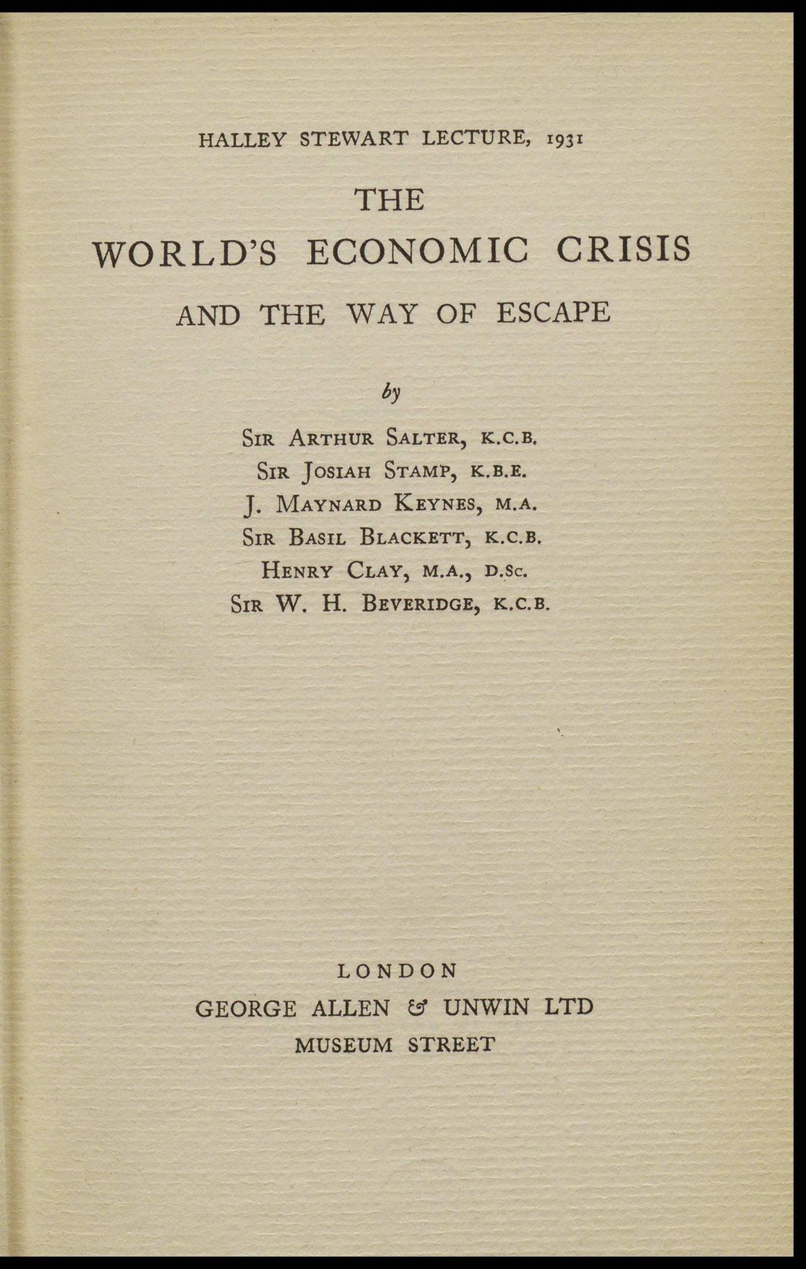 Right: Salter, Arthur, et al, 1932, The world’s economic crisis and the way of escape,