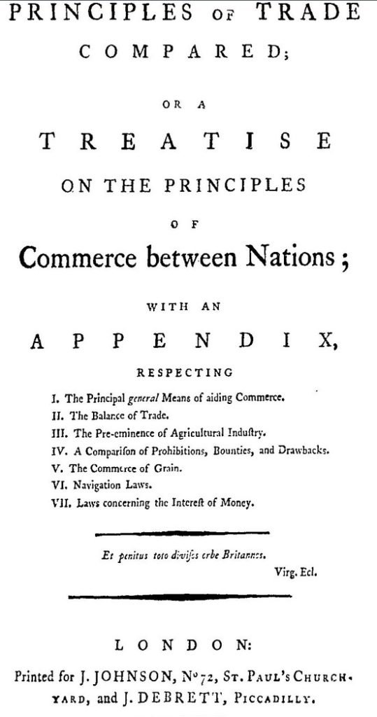 - Vaughan, Benjamin, 1788, New and old principles of trade compared, J Johnson and J Debrett, London p 3