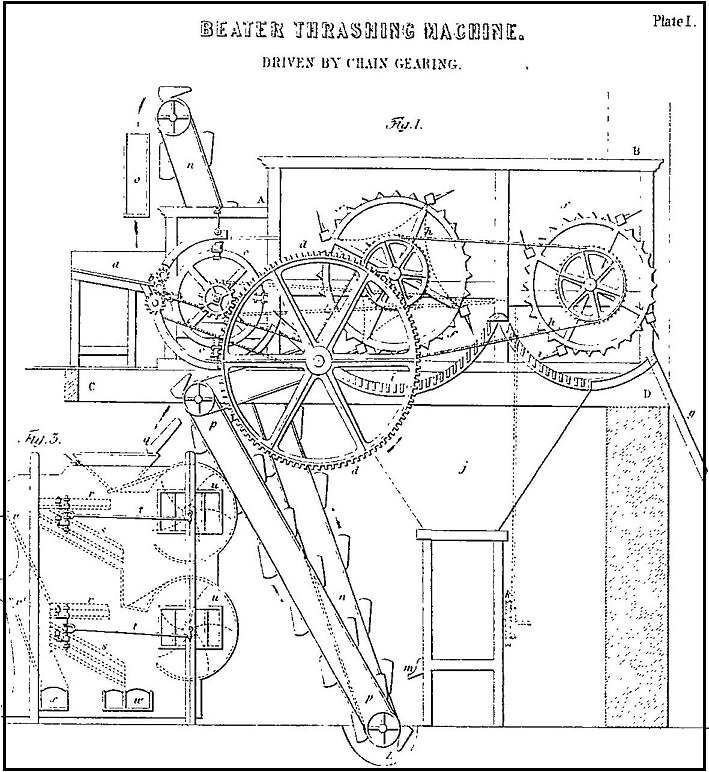 The series continues, covering joinery, printing and other trades, and was published up until 1703. The collection includes drawings of refinements for machinery used in the increasingly industrialised agricultural sector — such as this thrashing machine: